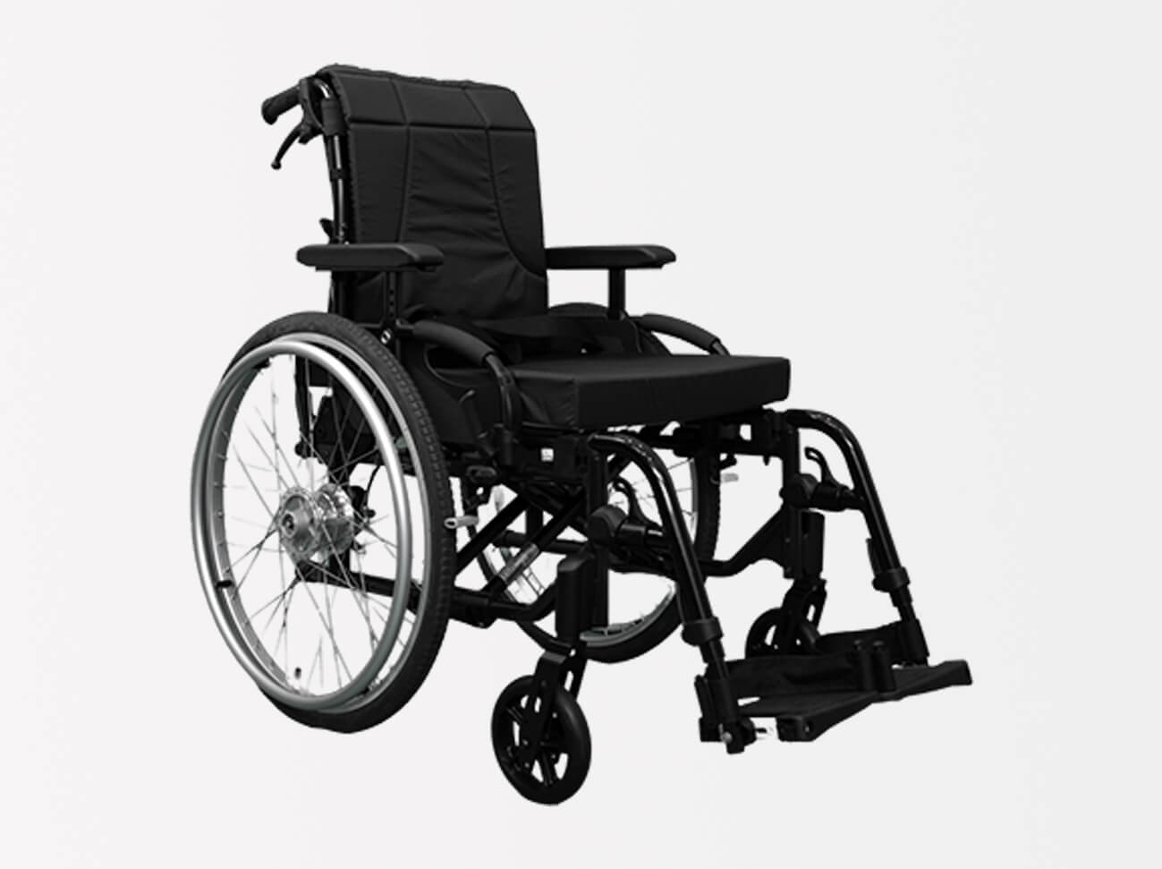 肉厚のパイプとセンターに位置するダブルクロスブレース、シートパイプを4点でがっちり受けるレシーバーにより、安定した本体アライメントを実現。体格の大きな人用にも対応できるように開発され、ISO規格をクリアした秀逸なセミアクティブ車いすです。